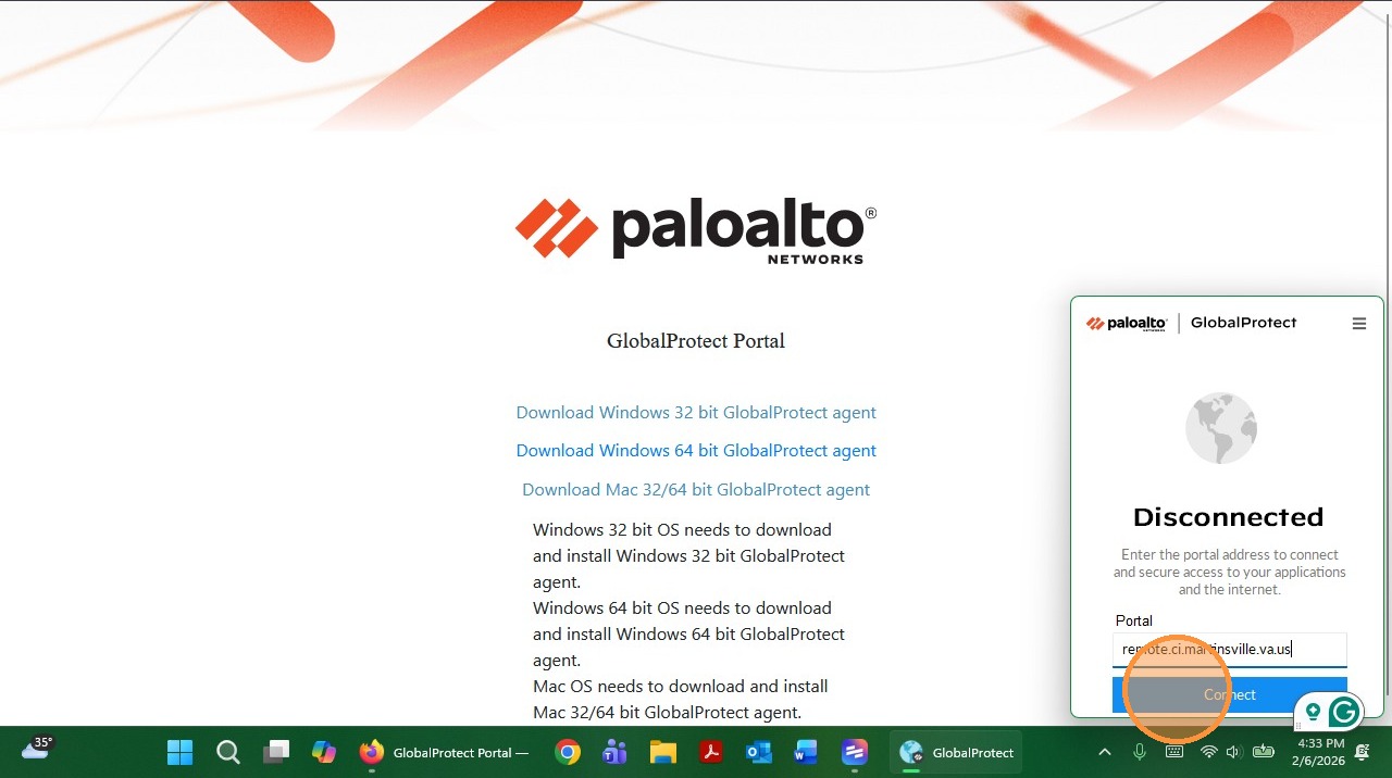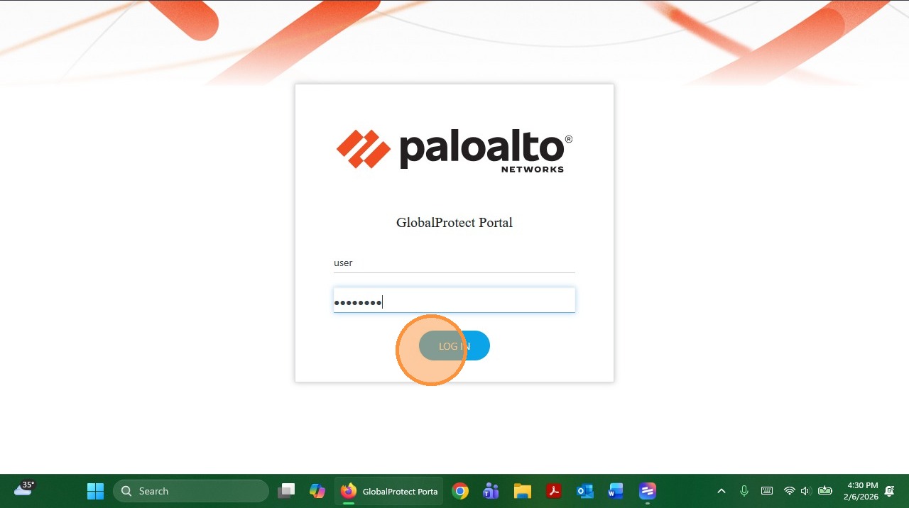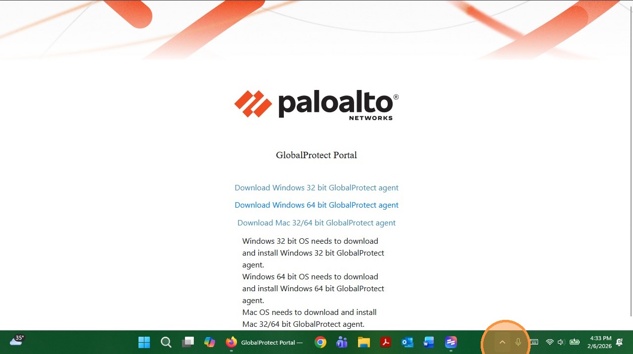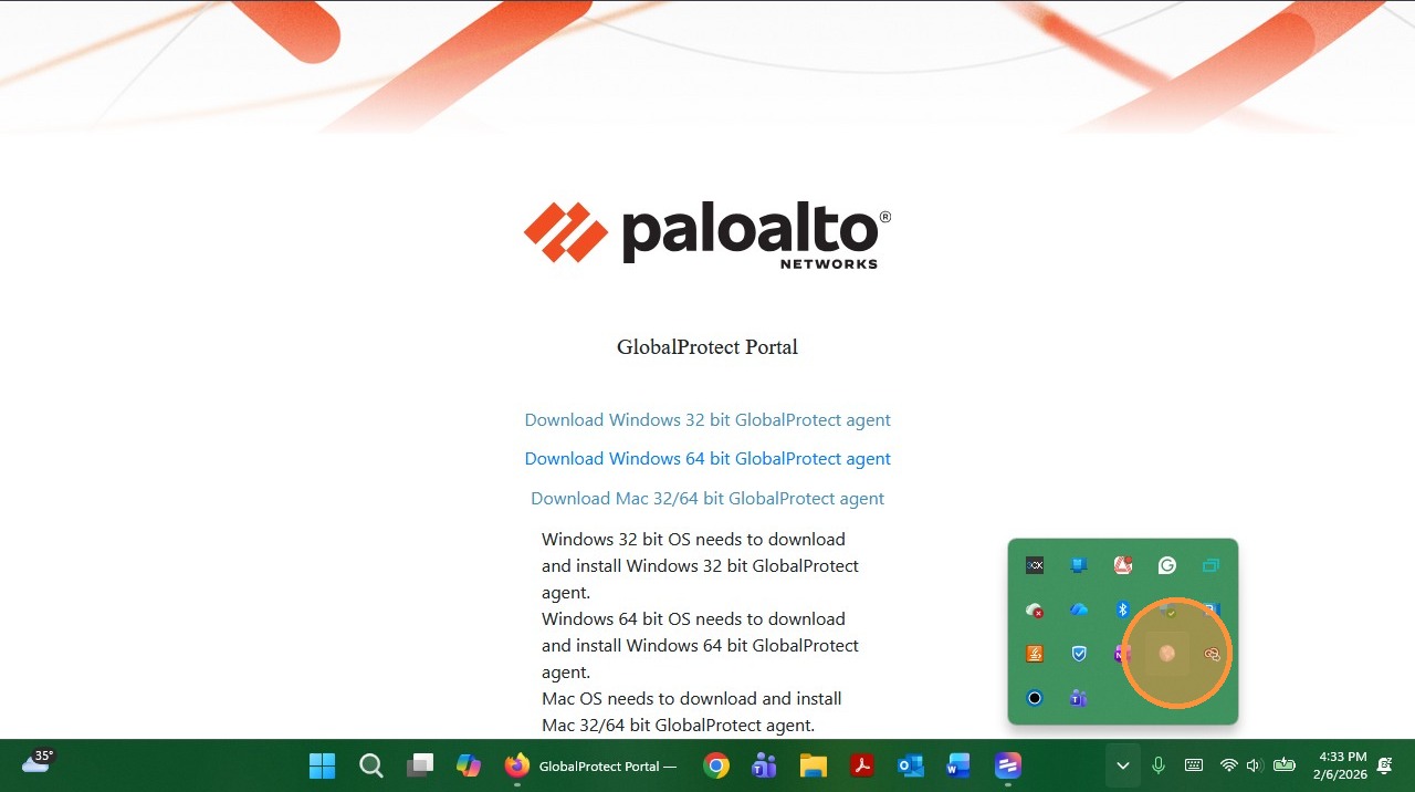 16. Click the Grey GlobalProtect Icon in (It looks like a World) in System tray overflow window.