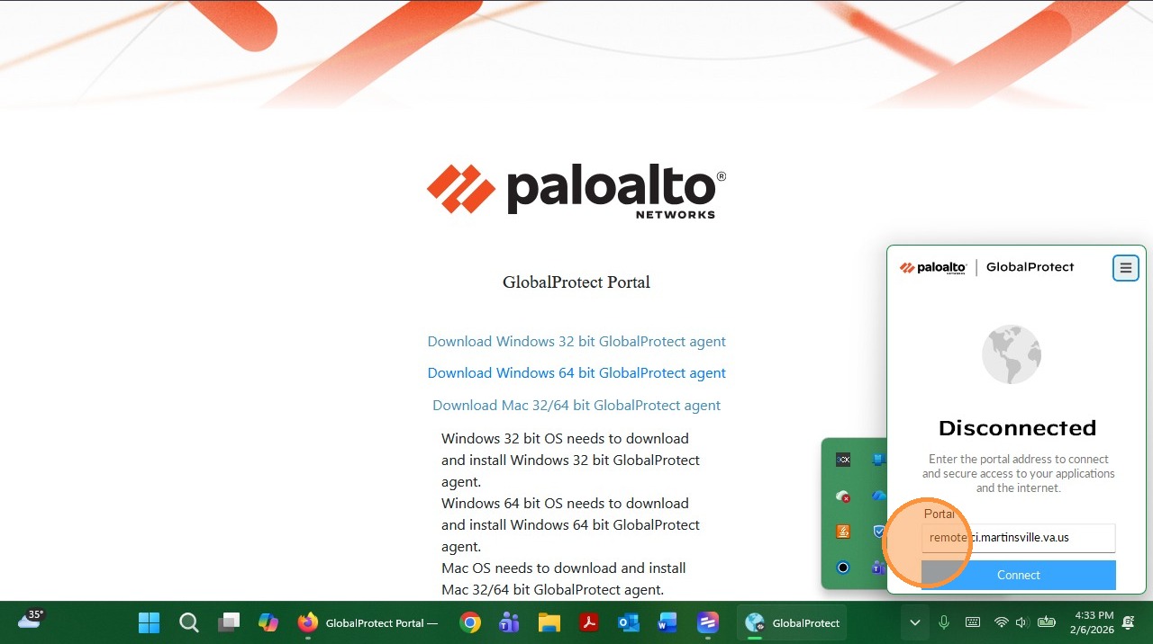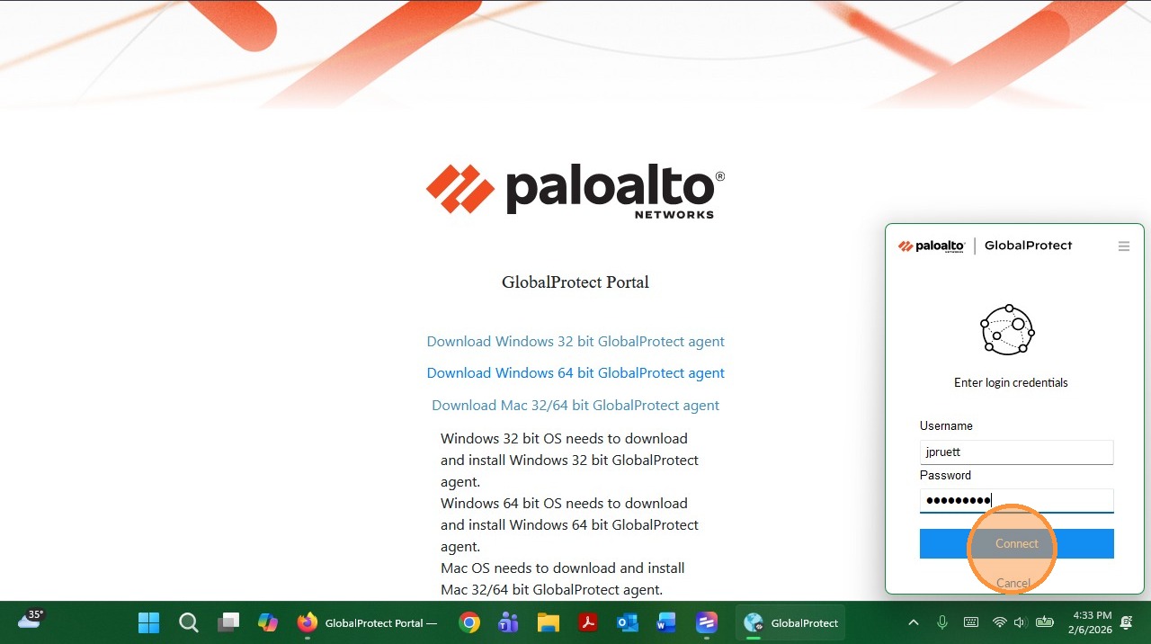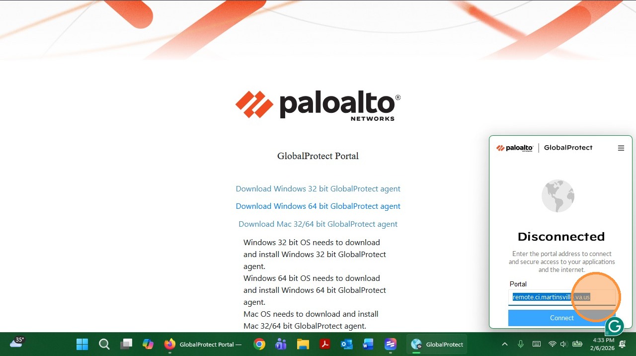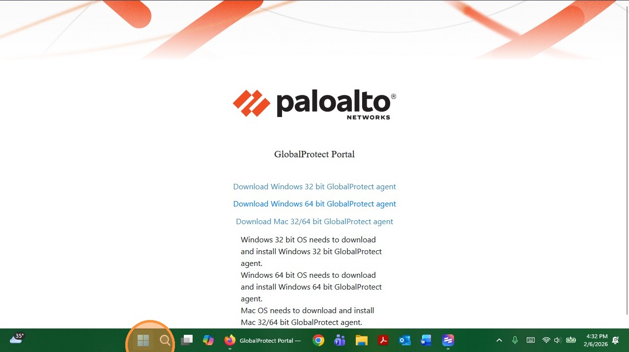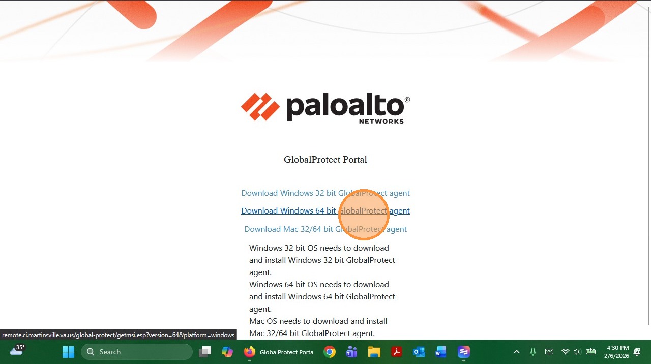 8. Click "Download Windows 64 bit GlobalProtect agent"