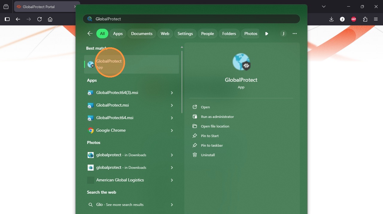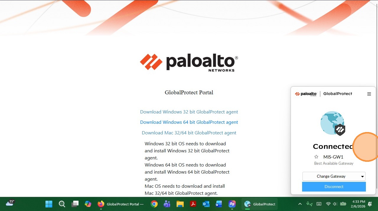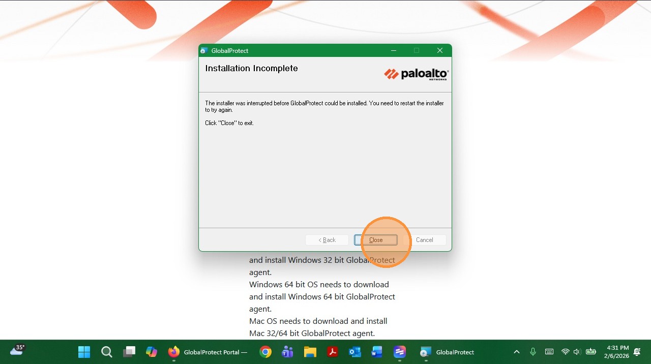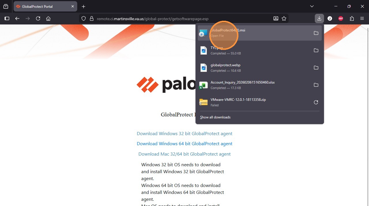9. It will download the VPN client called GlobalProtect64.msi - Launch that application