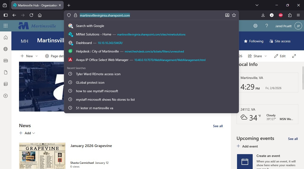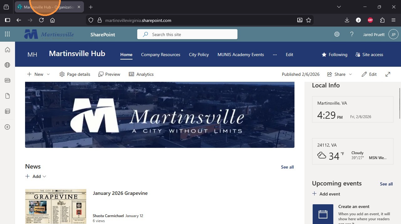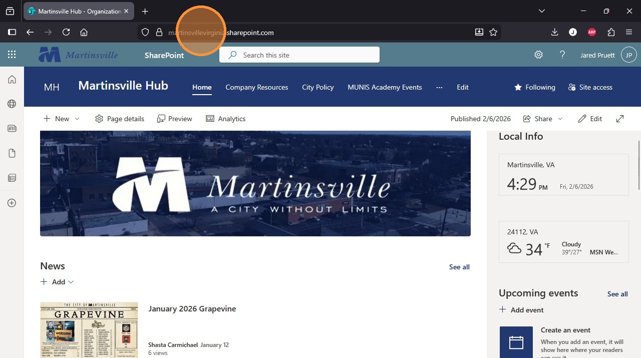 2. Go to "https://martinsvillevirginia.sharepoint.com"